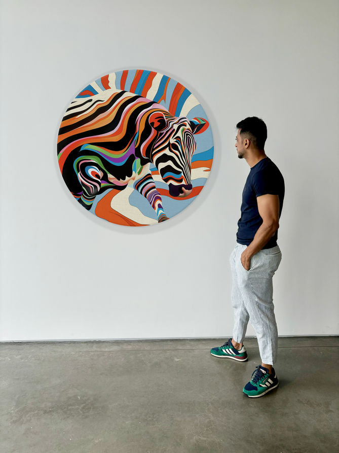The interconnectedness of all things is a cornerstone of Hindu philosophy. The energy that flows through you, your surroundings, and the very fabric of existence is intertwined, influencing and being influenced by each other. The artists works, like threads in a cosmic tapestry, weave together a narrative of this interconnectedness, showcasing how the smallest changes can ripple through the entire system. It is a reminder that energy is never destroyed, only transformed. Just as matter cannot be created or destroyed, energy persists, shifting from one form to another. The representation of the dynamic ideologies of Kali, Ganesha, Elephants, Tigers and Cow are each symbolic of the cultural threads bound by this energy, like the energy they represent, are a testament to this enduring principle.